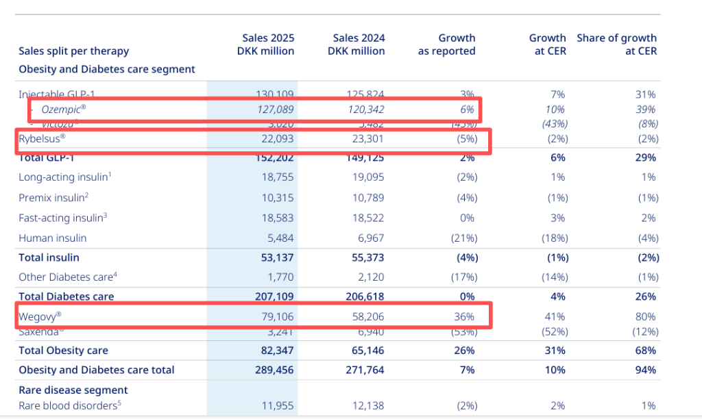 诺和诺德2025年产品销售表现